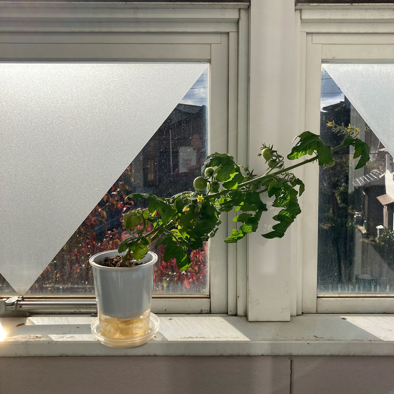 ミニトマトさんを窓際に置いてきたので、いっぱい日光当たって欲しい。